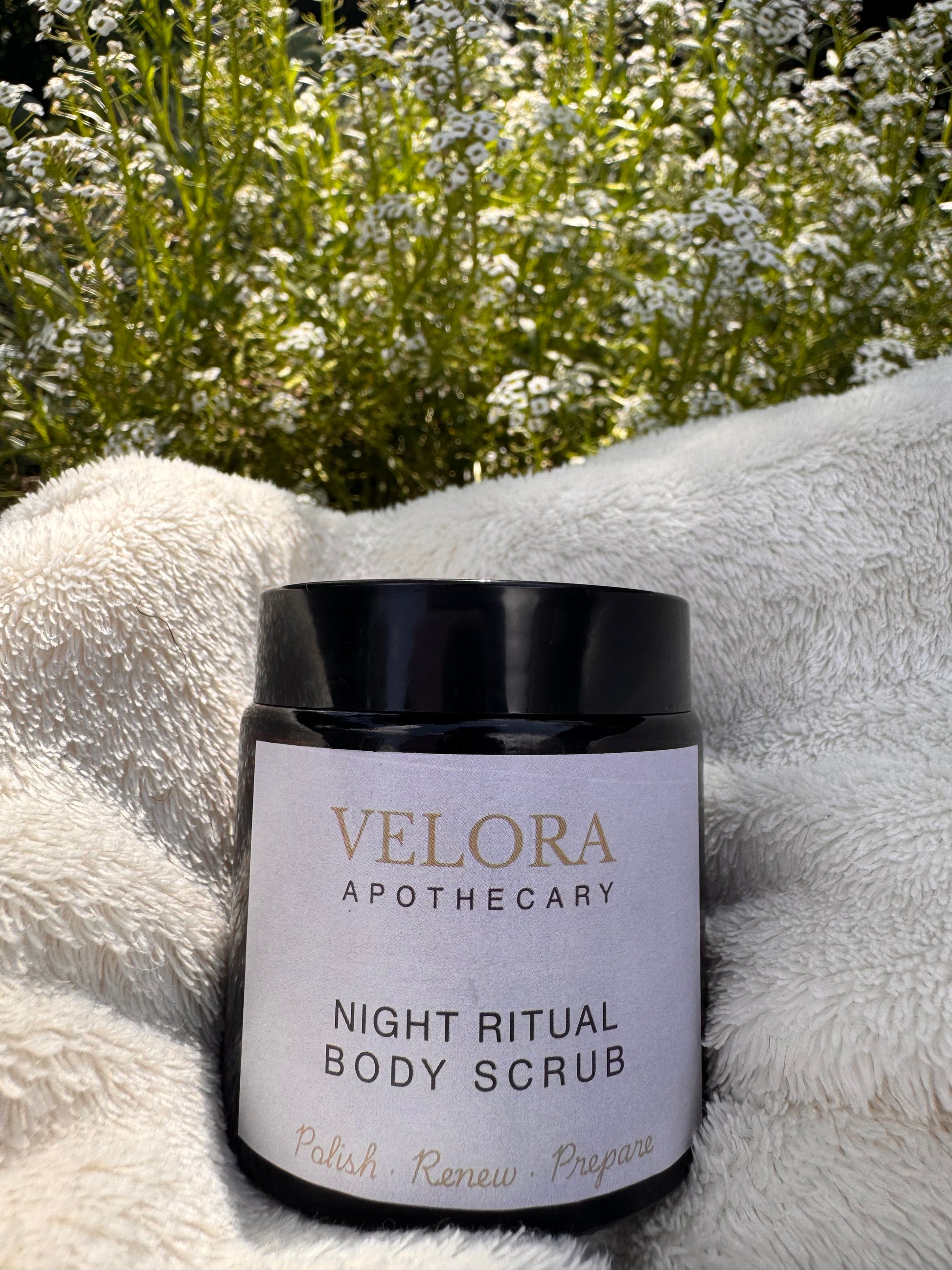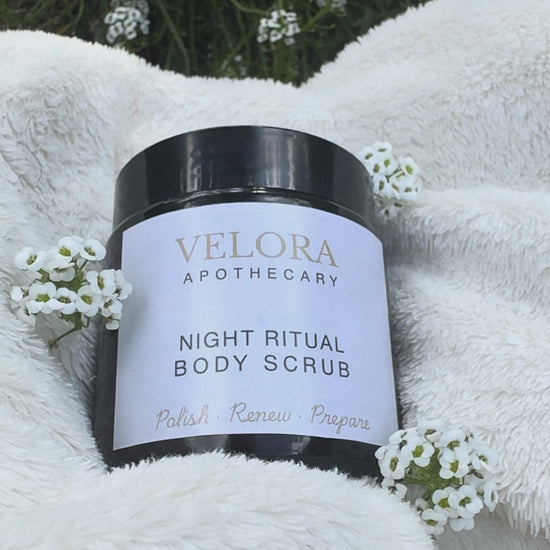 A gentle, evening exfoliation ritual that smooths and nourishes. Leaves skin soft, polished, and ready for the Night Ritual Body Butter.